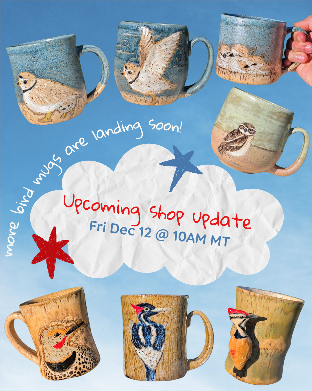 My next shop update on Friday, December 12 at 10:00 AM MT is the perfect opportunity to snatch the perfect gift for that birder or wildlife enthusiast in your life (yes, that can be you). Previews are up. Go to my shop to check these critters out!